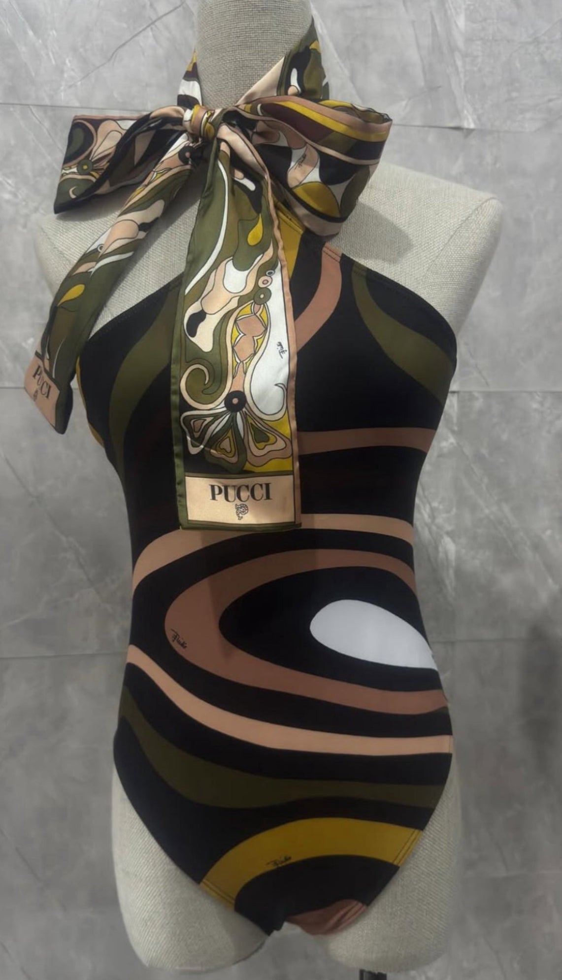 Mutilcolored Green & Olive Pucci SwimsuitΒ